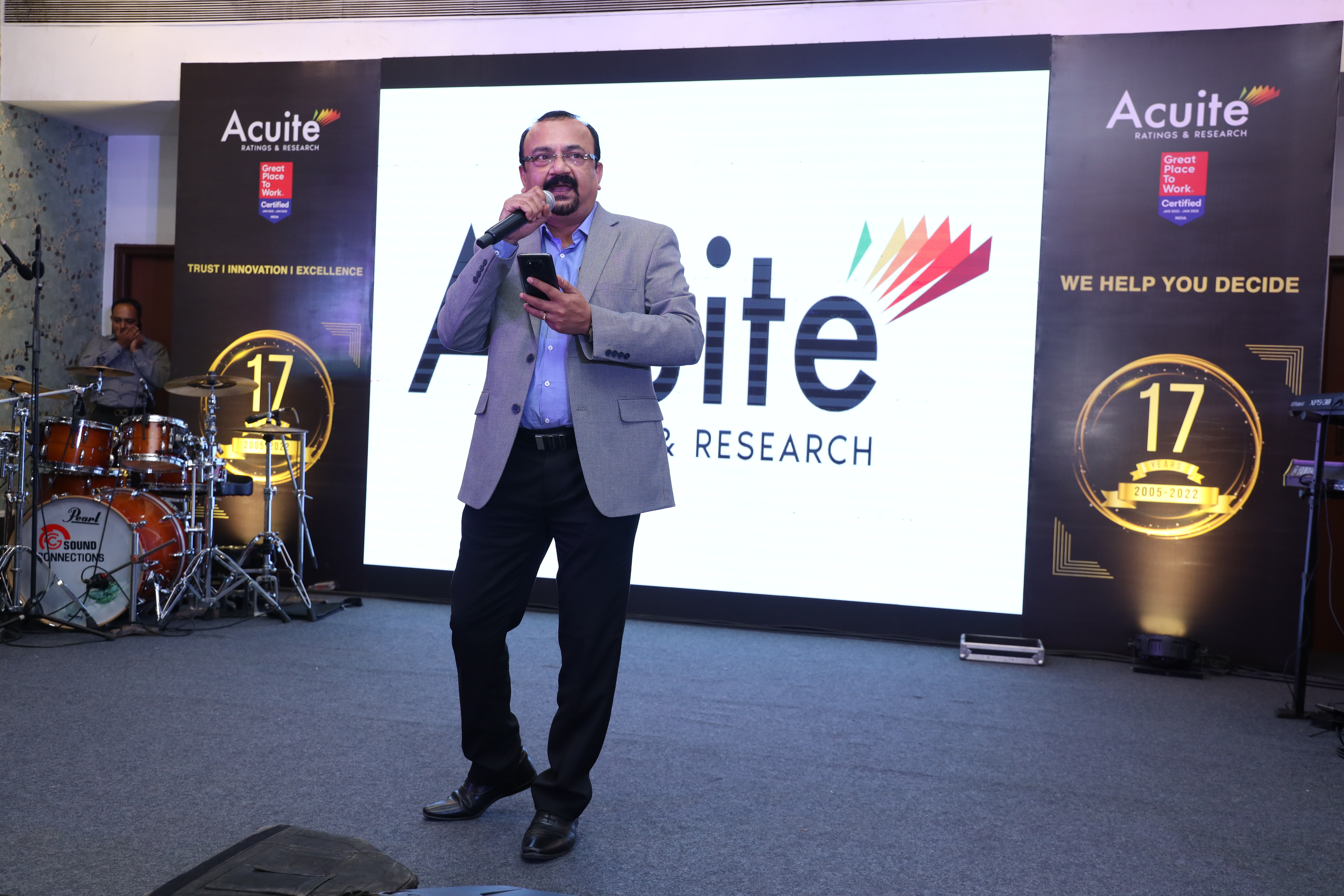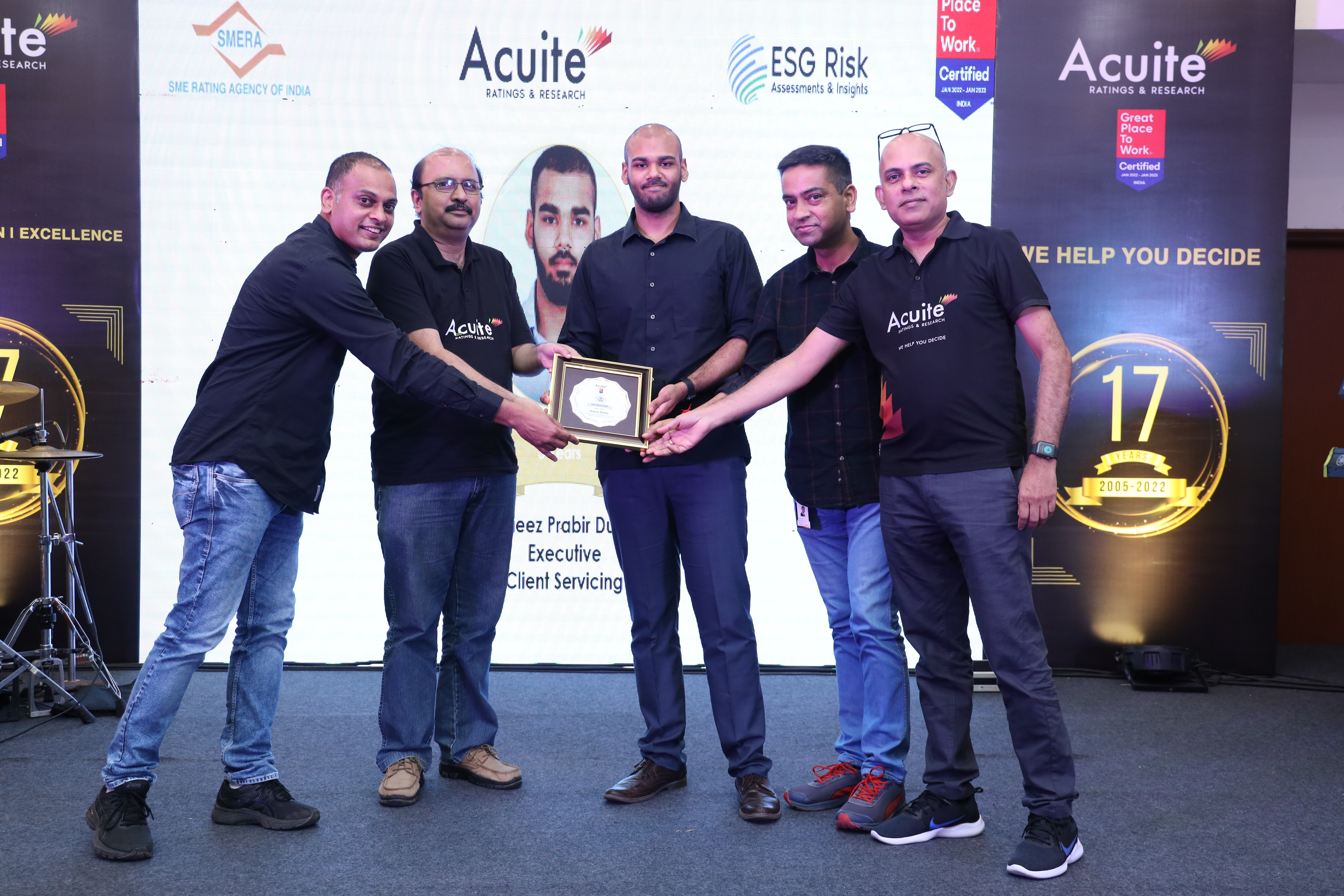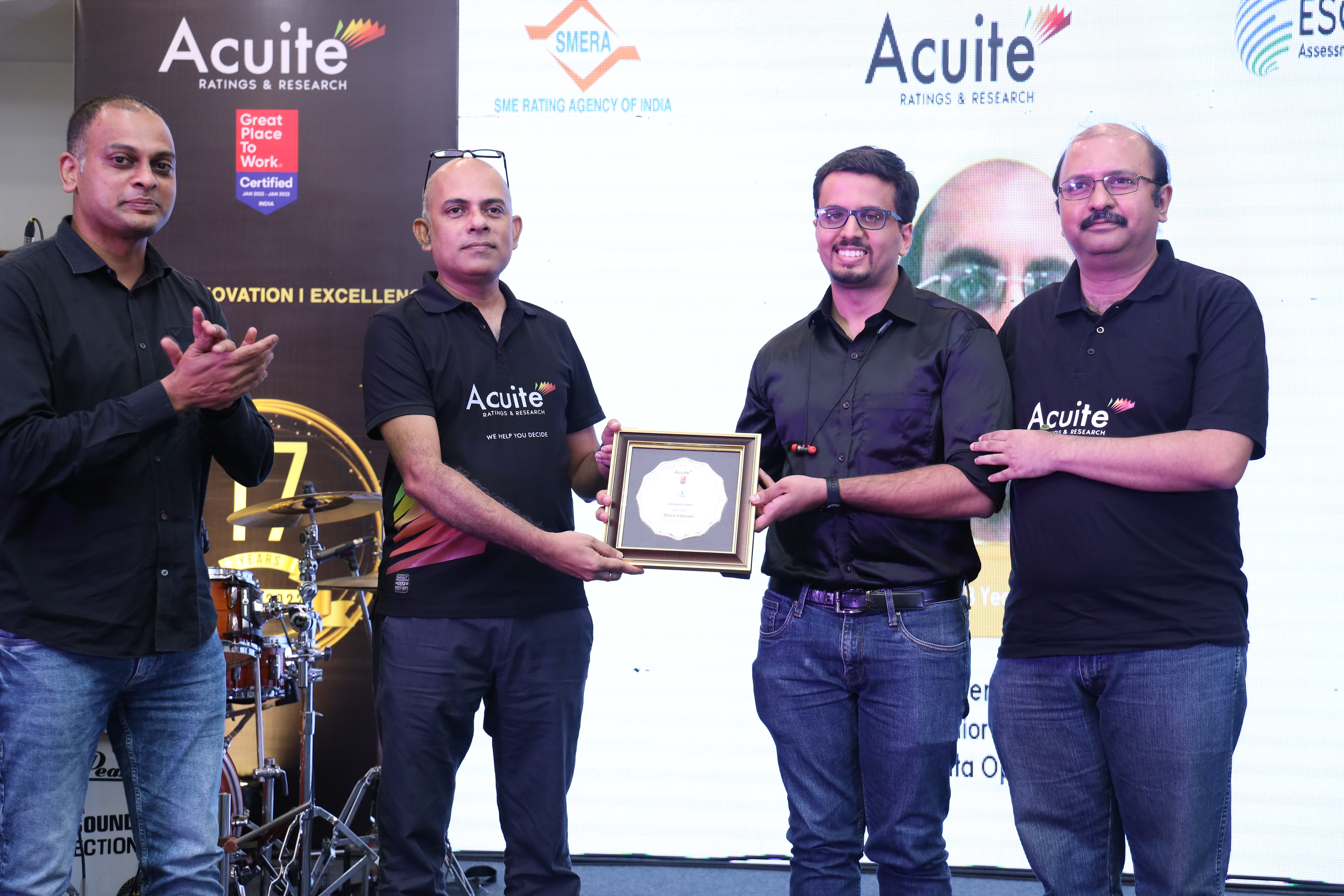 Acuite Celebrated 17th Anniversary on 5th Sept 2022 across all Acuite Offices An evening of Entertainment, Live Performances & Dinner was held at a banquet hall in Mumbai Long Service Awards were given and Classical & Fusion Dance performances were put up by the employees Ankush Bharadwaj from "Indian Idol Season 10" gave a superb music performance keeping the crowd on their feet all evening
